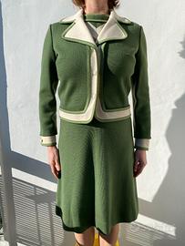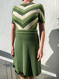 vestito donna vintage anni 70 verde bianco beige di ottima fattura, rarità. Condizioni ottimali.