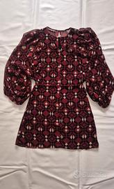 Vestito Zara con fantasia geometrica con maniche lunghe a sbuffo. Scollo rotondo con apertura posteriore.