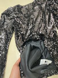 Modello corto, interamente ricoperto di paillettes nere che donano un effetto brillante e glamour.