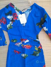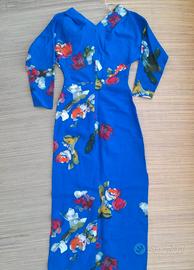 Abito donna limited edition Taglia XS, blu elettrico con fantasia floreale. Scollo a V,