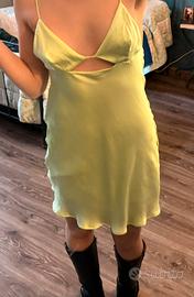 Vendo vestitino Zara color verde lime in tessuto satinato, modello corto con spalline sottili e piccolo cut-out sotto il seno.