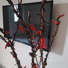 fantastico ramo con più di 500 luci (tre serie con possibilità di variare intensità) realizzato artigianalmente nel 2024 con decori non prettamente natalizi idoneo da tenere in casa tutto anno. i decori sono composti da peperoncini a cornetto rosso (sintetici) e degli adorabili bottoni originali vintage, all'occorrenza può essere adibito ad albero di natale o pasqua con nuovi accessori di vostro gusto...solo di luci ci sono più di 50 euro di spesa...anche il vaso è stato comprato apposta così come i decori...ideale anche per ingresso casa o attività commerciale vetrina hotel hall decoro natale addobbi natale .