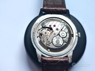 Cassa in acciaio con diametro pari a 33,6mm corona esclusa (35,2 mm corona compresa), fondello a pressione, vetro plexi privo di ogni segno, quadrante bitonale in perfette condizioni.