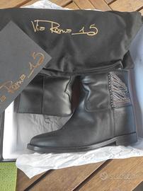 Via Roma 15 tronchetto nero in pelle con frange metalliche taglia 39. Usato due volte.
