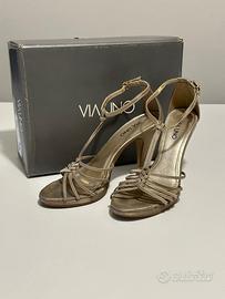 Bellissimi sandali VIA UNO, colore oro, in raso e pelle, numero 39. Sono in ottime condizioni, eleganti e perfetti per occasioni speciali. Comodissimi!