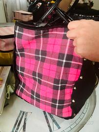 Bellissima borsa Victoria’s Secret tote bag con ai lati fantasia scozzese nera e fucsia Usata ma in ottime condizioni Misure : 60x30x25