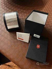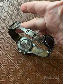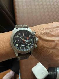 Fantastico Victorinox Swiss Army ChronoPro. Automatico in acciaio inossidabile, fondello trasparente, vetro zaffiro antiriflesso e resistente ai graffi, resistente all'acqua 100 metri. Dimensioni 42 mm. Cinturino originale in pelle marrone. Vendo con scatola originale e documenti originali