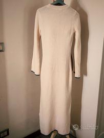Stile: Aderente (bodycon), a coste, con maniche lunghe svasate (a campana) e bordi a contrasto (probabilmente blu scuro o nero)