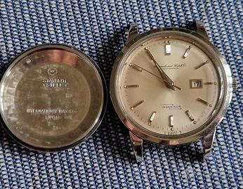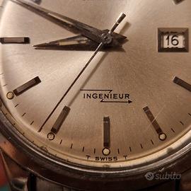 Raro orologio vintage IWC INGENIEUR Ref. 666AD Automatic Date Si tratta del primo orologio 'antimagnetic" ovvero di Tool watch progettato per professionisti ed ingegneri esposti a forti campi magnetici alla pari dei modelli sviluppati successivamente come Rolex Milgauss 1019 ,Omega Railmaster e Zenith Defy Gauss Cassa Acciaio Stavbrite Steel 37mm. Fondello a vite Corona oriqinale Vetro plastica Quadrante argento soleil al Trizio sialato TSwissT al 6 Anno 1966 (seriale 182.... Doppio fondello| antimagnetico Movimento di manifattura automatico Pellaton Completo di bracciale originale a "chicchi di riso" Gay Freres logato IWC In condizioni ottime,tutto originale Completo di scatola originale dell'epoca. Vendo o permuto/scambio con orologio di pari pregio e valore.