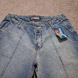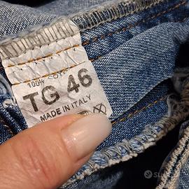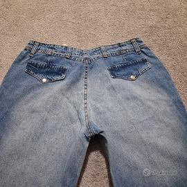 Jeans a gamba ampia Tessuto non elasticizzato Vita media bassa La taglia sull'etichetta non corisponde. Veste L Controllare le misure fornite: Larghezza vita: cm 42 Largezza fianchi: cm 57 Altezza cavallo: cm 22 5 Larghezza coscia: cm 29 Larghezza caviglia: cm 31 Lunghezza totale: cm 111