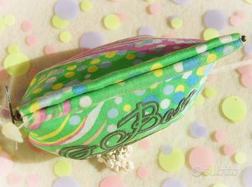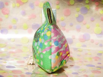 PORTAMONETE CLIC CLAC marchio BEST COMPANY, OLMES CARRETTI e CARTORAMA, autentico VINTAGE anni '80, epoca Paninari, in tessuto e tipica fantasia.