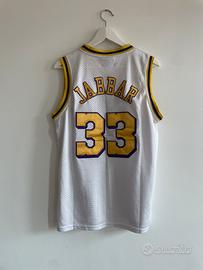 Canotta Kareem Abdul-Jabbar NBA LA Lakers. Anni 70-80. Taglia S, dimensioni lunghezza 77cm, larghezza torace 51cm.