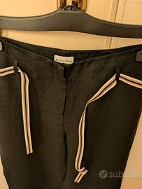 Pantalone Andrea Mare' in puro lino nero. Piccoli passanti con cintura in tessuto alta cm. 1,5. Tasche sul lato posteriore. Gamba larga, a livello coscia cm. 29.
