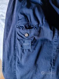 Blazer in cotone blu con pattine sulle tasche e spacchi dietro . Già lavato