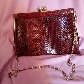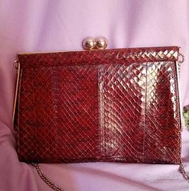 Dimensioni 20 x 14 cm Pochette vintage anni 70 in pelle di serpente con apertura a dottorbag,molto ben conservata