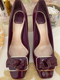 Scarpe col tacco vintage da una collezione limitata di Christian Dior. Acquistate a Parigi nel 2000. Morbidissima pelle verniciata con soletta in vera pelle. Una bellissima tonalità melanzana, particolarmente bella con sottili dettagli dorati.