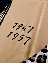 1947-1957 Celebrazione del 10° anniversario del Nuovo Look. Progettato da Renè Gruau. Sfondo con stampa leopardata, colori predominanti marrone oro, beige, nero.