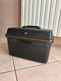 Vanity case vintage in perfette condizioni con specchio, diversi vani di diverse dimensioni, elastici di dimensione personalizzabile e chiavi per chiuderlo e bloccarlo.