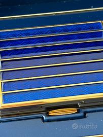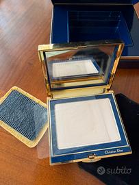 Titolo: Raro Poudrier Luxe Christian Dior "Dune" - Vintage anni '90 - Completo • Descrizione: pezzo da esposizione,,smalto blu del coperchio perfetto. Scatola originale