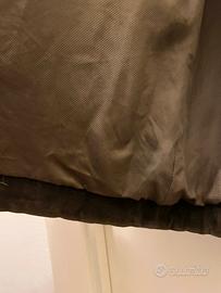 abbottonatura sul davanti con bottoni ricoperti di velluto marron, come il colletto, il risvolto delle maniche, il profilo delle tasche e il profilo dell'orlo - foderato con satin color marron -