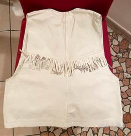 VINTAGE - GILET DONNA DI PELLE BIANCA FODERATO CON SATIN - NEL CARRE’ DAVANTI E DIETRO CON FRANGE DELLA STESSA PELLE - N. 4 BOTTONI A PRESSIONE SUL DAVANTI - LUNGHEZZA DALLA SPALLA CM 50