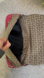 borsa monogram vintage Guess da spalla,con dettagli in pelle di coccodrillo rosa.