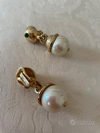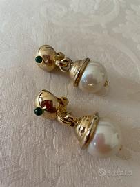 Vendo coppia di orecchini pendenti vintage, anni Ottanta del Novecento, con perla e pietra dura verde smeraldo. Consegna a mano a Napoli o spedizione. Vendo euro 85 (trattabili, poco ma trattabili). Le foto non rendono