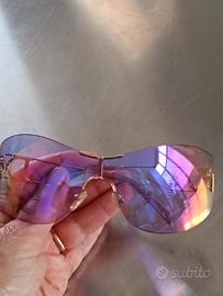 occhiali a maschera di colore rosa e finiture in oro. pari al nuovo . usati pochissimo perché di lì a poco ho dovuto mettere gli occhiali da vista