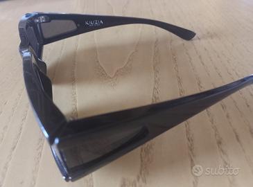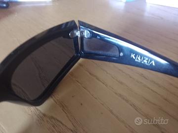 occhiali da sole originali Krizia fine anni '80 forma molto intrigante, con lenti laterali che fanno angolo con quelle anteriori per un angolo visuale completo protetto