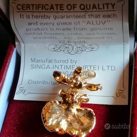 rara mini orchidea Vera in bagno d'oro, con certificato autenticità, utilizzo sia come ciondolo che come spilla. ottime condizioni/ mai usato