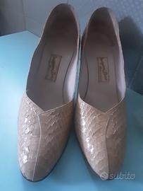 Scarpe in puro pitone beige, artigianali, vintage anni 60, comode, eleganti, per tailleur, usate pochissimo, pari al nuovo, taglia 40, tacco 4 cm Spedizione a carico dell'acquirente