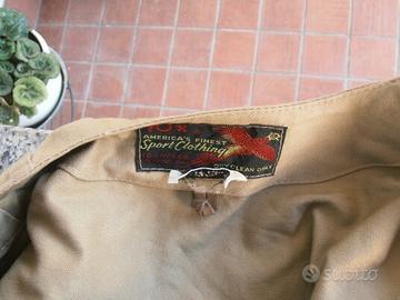 giacca da tiratore scelto utilizzata sia da militari che sportivi civili negli anni cinquanta sessanta della nota casa americana ten x in leggero cotone kakhy con gomitiera sx in gomma e rinforzo in morbida pelle al braccio per la imbracciata della calciatura chiusura frontale a bottoni e girocollo due tasconi frontali ampia capacità di movimento al dorso con due soffietti laterali ottima per tiro a segno donna o ragazzo taglia piccola una quarantasei circa tg trentasei americana fondo di magazzino pari al nuovo