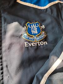 Giacca Tuta Everton in buone condizioni generali. Alcuni piccoli fiorellini (segnalati nelle foto) e difetto nella scritta posteriore, anch'essa segnalata nella foto.