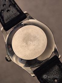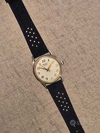 Elegante orologio vintage Wyler con la celebre tecnologia Incaflex, un pezzo di storia dell'orologeria svizzera. L'orologio si presenta in condizioni estetiche eccellenti e vanta un design classico senza tempo. Caratteristiche principali: * Movimento: Meccanico a carica manuale, perfettamente funzionante e preciso nel tenere il tempo. * Quadrante: Color bianco latte con numeri arabi applicati dorati e una raffinata minuteria a "perlage" dorata. * Lancette: Dorate, capaci di creare bellissimi riflessi di luce che ne facilitano la leggibilità. * Vetro: Plexiglass originale in perfette condizioni, senza graffi. * Corona: Originale marchiata con l'iconica "W" di Wyler. * Cinturino: Nuovo, in vera pelle blu traforata (stile Racing/Rally) che dona un tocco sportivo ed elegante. Dimensioni della cassa in acciaio: * Diametro: 33 mm (esclusa corona) * Lug-to-Lug: 40 mm * Spessore: 9 mm (molto sottile, perfetto sotto il polsino) Un orologio Swiss Made pronto per essere indossato, ideale per collezionisti o per chi cerca un accessorio vintage di classe e affidabile. #wyler #wylervetta #incaflex #vintage #vintagewatch #orologiovintage #swissmade #manualwinding #caricamanuale #33mm #dresswatch #orologiodapolsio #collezionismo #horology #vintagestyle #watchcollector #rarewatch #retro #vinteditalia #watchesofinstagram