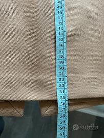 Tessuto strutturato, cade dritta valorizzando la silhouette.