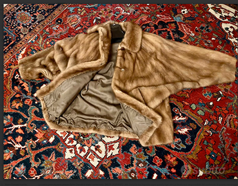 SPETTACOLARE e PREGIATA pelliccia DESIGN SWING a MANTELLA realizzata in VISONE NATURALE TINTA MIELE. Di grande pregio, firmata dall'Atelier VIPA PELLICCERIE, dal sapore moderno/contemporaneo. Linea essenziale, struttura leggera e pelli setose e luminose, con finiture impeccabili, fodera in raso di satin, maniche a pipistrello. Un capo esclusivo, elegante e senza tempo. CONDIZIONI: ottimo stato conservativo. Veste taglia unica, indossabile da una 46/52.