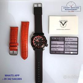 Orologio originale Visconti in ogni sua parte, mai indossato, nuovo e senza segni di usura, full set (scatola accessori vari, garanzia card ufficiale Visconti), garanzia/dichiarazione di vendita nostro negozio valida per 12 mesi.