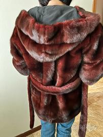Visone da donna in ottime condizioni, mai indossato, dal taglio sportivo, vestibilita comoda 42/44 IT, con cappuccio e cintura in vita.