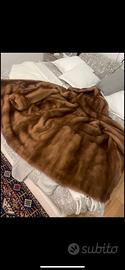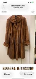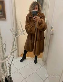 Cappotto in vero visone femmina naturale (mink) color marrone caldo, non tinto, con lavorazione a pelli intere verticali.