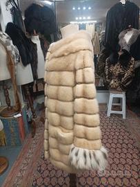 Raffinato e Pregiato Vero Visone Naturale Palomino, Color Crema, Come Nuovo, Lavorazione Orizzontale con Inserti Scamosciati, Scollo a Barchetta, Tasche Laterali e Chiusura a Gancetti sul Davanti. Un Vero Affare!