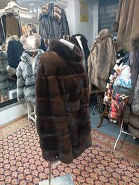 Pregiata ed Elegante Giacca in Vero Visone Scan Brown, Colore Marrone Scuro, tg 48, Davvero Come Nuovo, Pregiata Lavorazione Orizzontale con Inserti Scamosciati, Colletto Alto alla Coreana, Tasche Laterali e Chiusura a Gancetti sul Davanti
