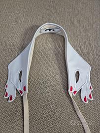 Vendo l'iconico colletto staccabile Vivetta con il famoso motivo delle Mani ricamate e lo smalto rosso sulle unghie.