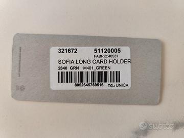Vendo Sofia Long Card Holder Vivienne Westwood in pelle saffiano verde, completamente nuovo e mai utilizzato. Elegante, pratico e versatile, perfetto per custodire carte, banconote e piccoli oggetti con massima sicurezza grazie alla zip centrale. Ideale come regalo o per uso personale, porta carte elegante e pratico. Accessori inclusi: scatola originale e card.