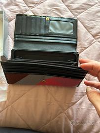 Pirtafoglio in pelle nero e lana a scacchi colorati. Come nuovo!!