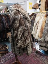 Pregiata e Raffinata Vera Volpe Argentata, tg 48, Come Nuova e Perfettamente Foderata, Colore Marrone/Nero con Striature Bianco/Argento, Calda ma non Pesante, Ideale anche per la Primavera, Soffice con Folto ed Ampio Collo a Scialle, Tasche Laterali e Chiusura a Gancetti sul Davanti.