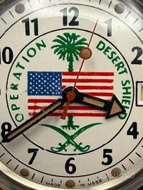 Il quadrante celebra la famosa operazione Desert Shield della guerra del Golfo. Caratteristica di questo modello 1° serie è l’assenza del logo Vostok e la ghiera con punto luminoso a ore 12.
