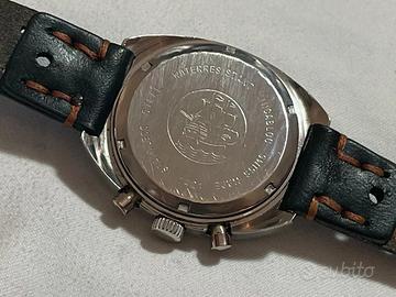 Movimento a carica manuale Valjoux 7734, funzionante in tutte le sue funzioni: cronografo preciso e ottima tenuta del tempo. Ponte firmato Wakmann.