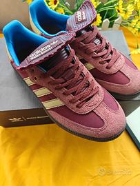 La collaborazione Wales Bonner Samba è una sneaker bassa unisex. La classica colorazione marrone mohair crea un look rilassato e lussuoso. I dettagli in pelle scamosciata e la fodera blu zaffiro creano un look premium. Le colorazioni SAMBAQ non deludono mai. Le scarpe Adidas Originals sono sempre leggere e incredibilmente comode. Nuove di zecca e ancora nella loro scatola, sono anche un regalo perfetto. Spedizione entro 1-3 giorni.