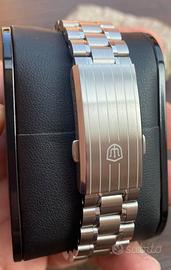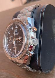 Orologio dal design sportivo e pulito, ispirazione racing / space chronograph, perfetto sia per uso quotidiano che per collezione. L'orologio ha delle ottime finiture come da foto ed è pari al nuovo con bracciale originale.