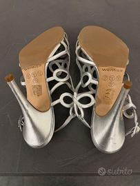 Werner - Sandali in pelle con cinturini - colore argento - numero 39 - nei tacchi, soprattutto, e nella parte anteriore lievi segnali di usura